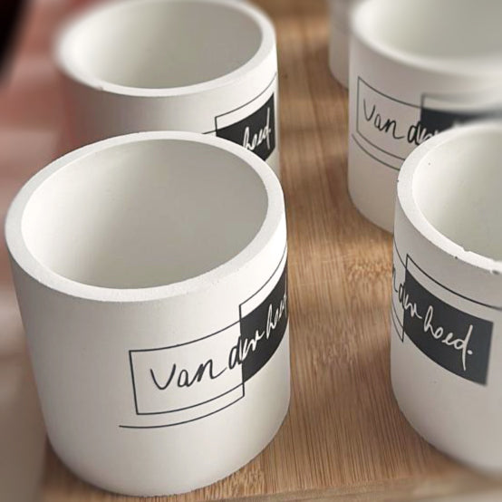 Unsere regionalen Lieferanten versorgen uns mit den edelsten und möglichst naturnahen Zutaten bei der Herstellung sinnlicher Duftmomente. Von Hand gegossener Beton, paraffinfreier 100% pflanzlicher Raps- und Kokoswachs aus Deutschland, edler Kork aus Portugal und delikate Duftöle aus England verschmelzen zu deinem Van der hoed Unikat.